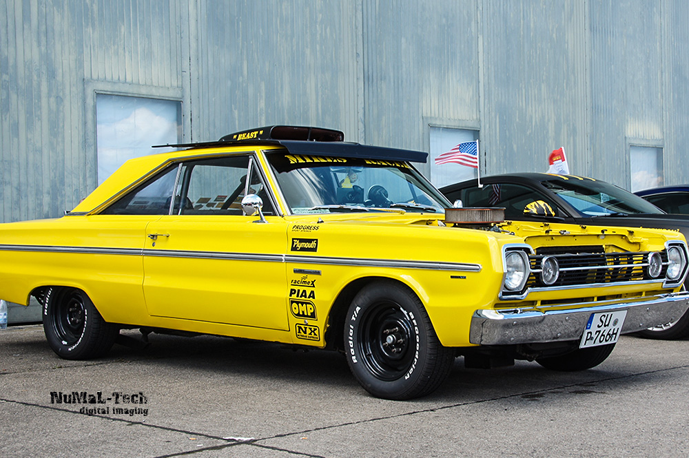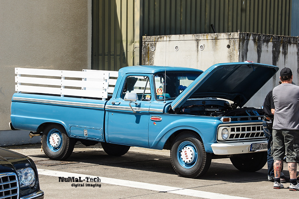 US Car Treffen auf dem altehrwürdigen Flugplatz der Günther Plüschow Kaserne in Mendig. Wo früher das Heeresfliegerregiment 35 mit ihren CH-53G und BO105-PAH beheimatet war, tummelten sich Ford F100, Chevys, Mustangs, Dodge und Corvettes……